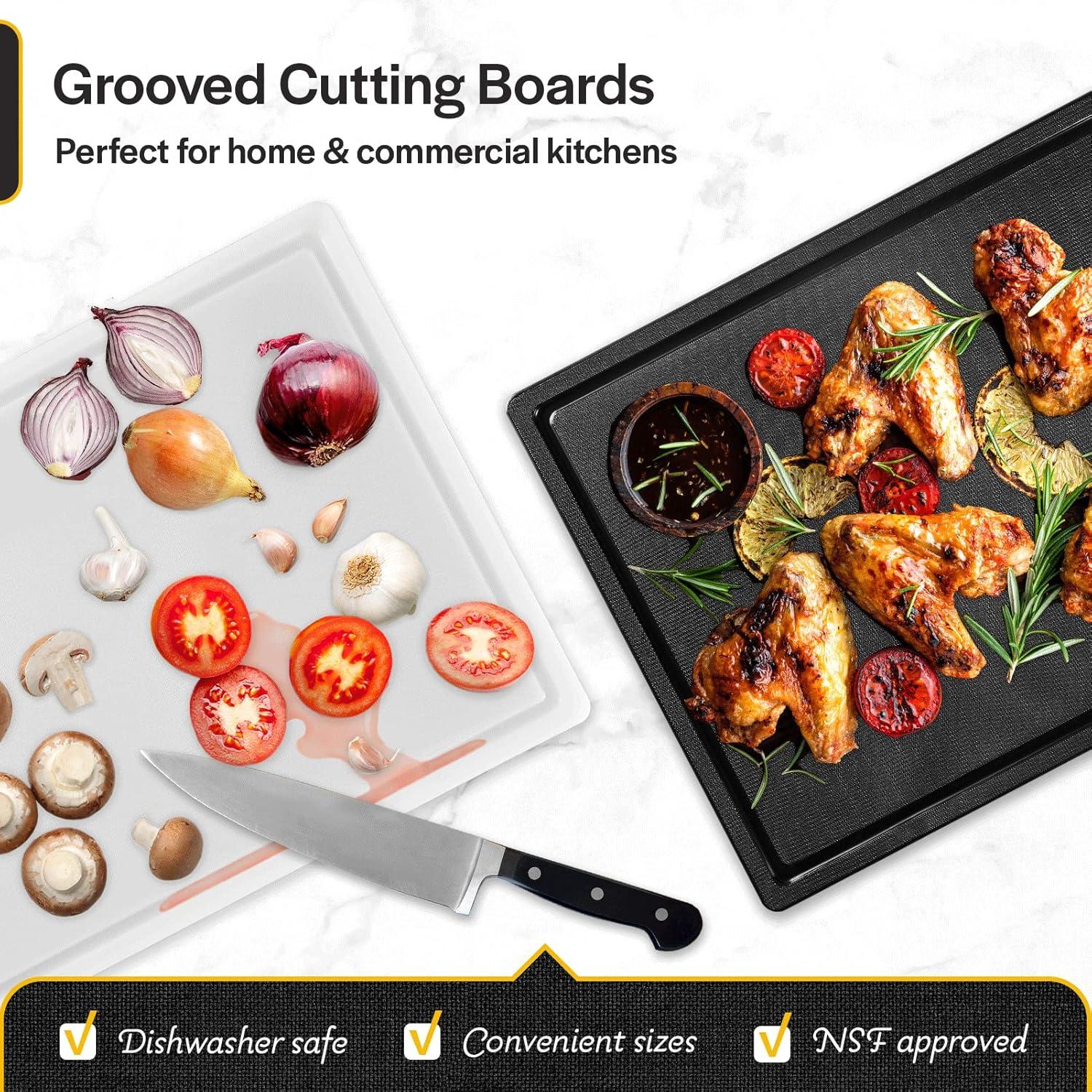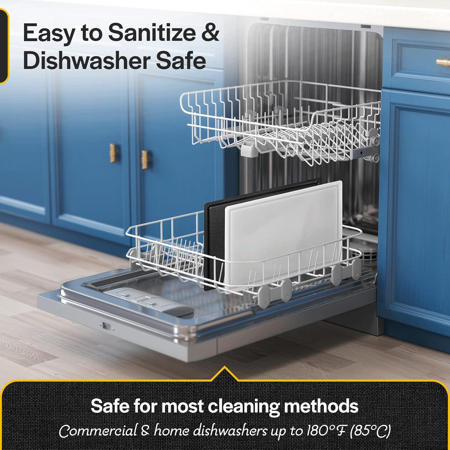 JUICE GROOVE – With a deep grooved channel, our dishwasher safe cutting boards contain messy juices and keep your kitchen countertops clean.