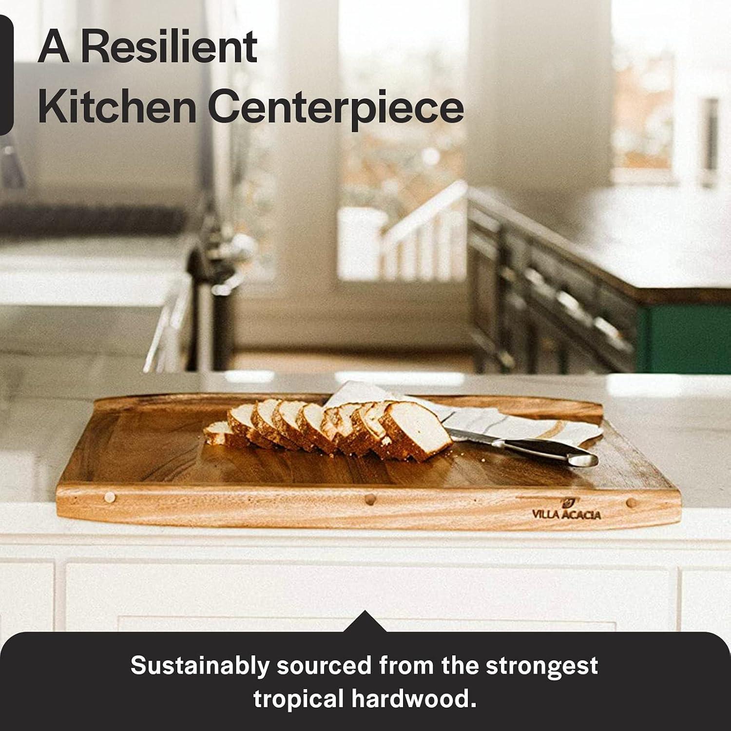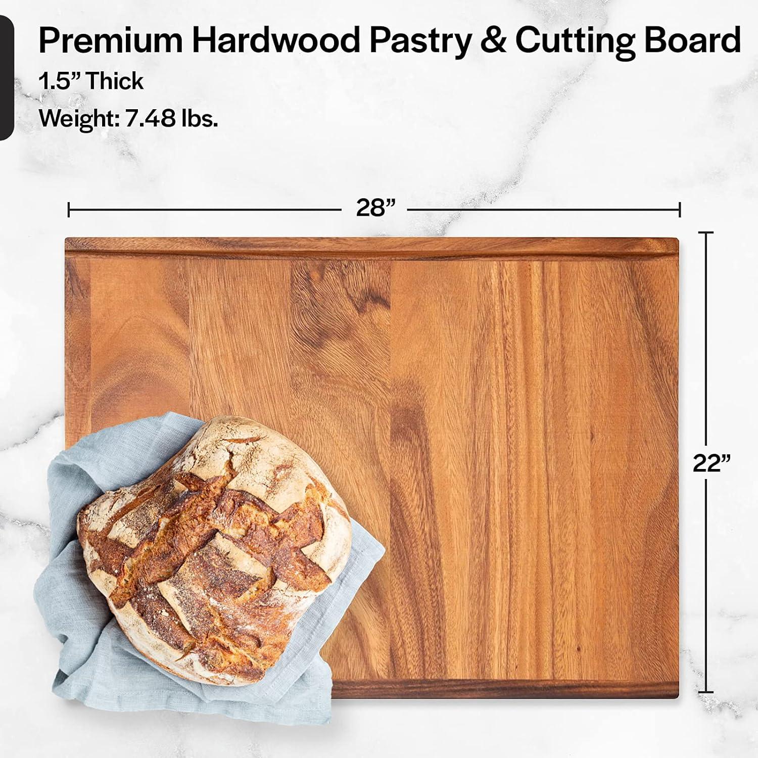 The dark colored wood provides solid contrast when used with flour and shaping of bread, pizza or more