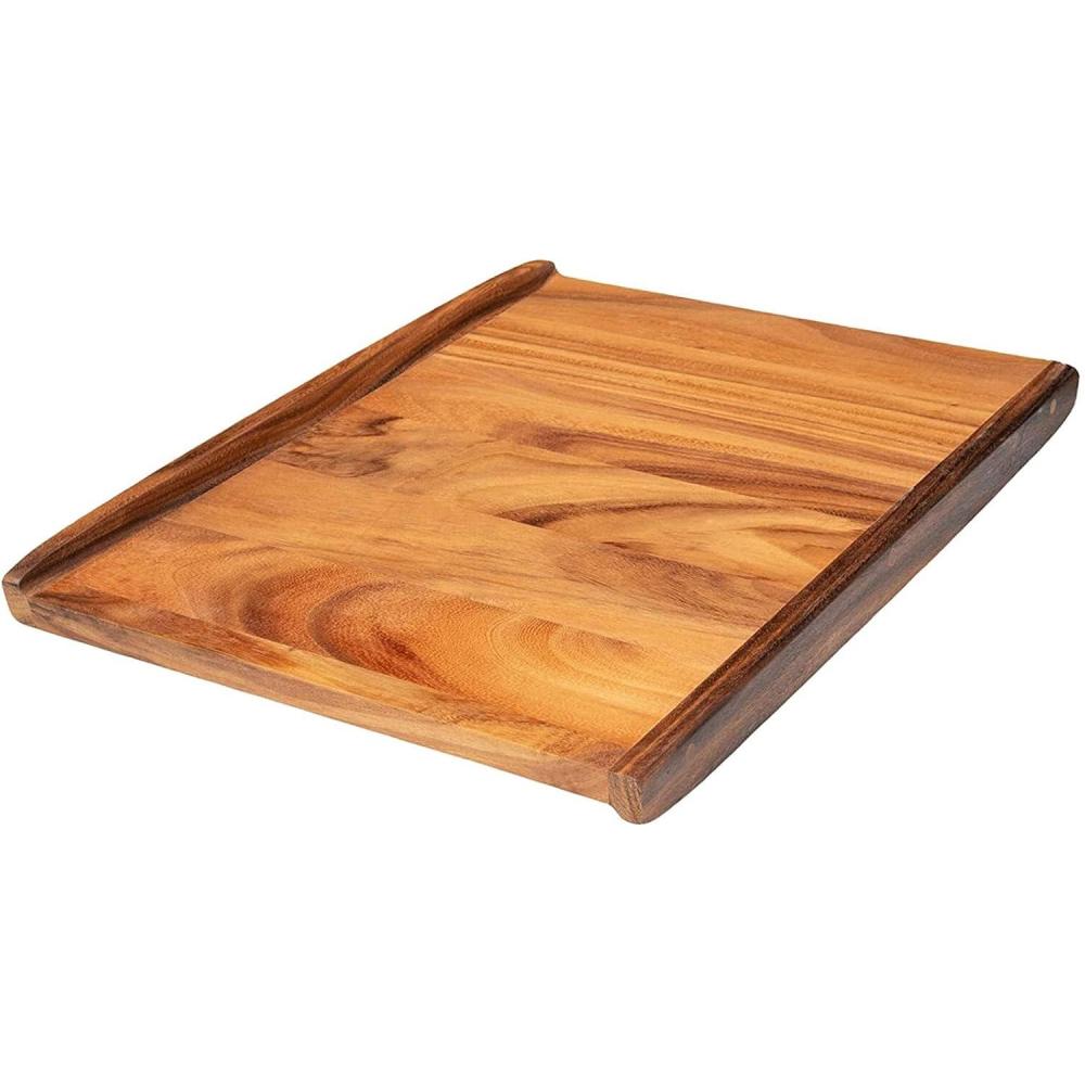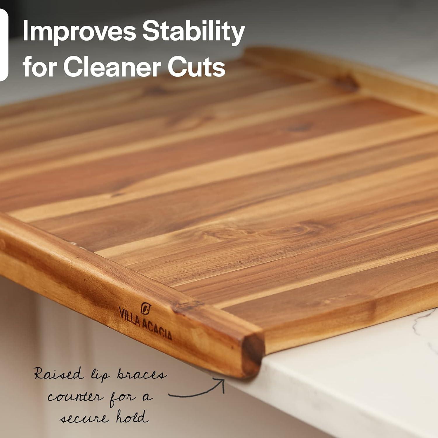 A front lip braces against the front of the counter to secure the board in place while rolling dough